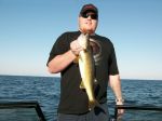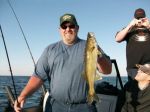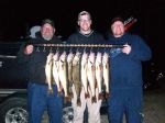 Yesterday was a short 5 hr. trip with Matt, Tim and Mickey from lower Michigan. We got on the water around 5 p.m. and started trolling Walleyes Choice (http://www.walleyeschoice.com) harnesses in 20 to 24 feet of water over some rock piles and almost immediately got into the fish. We used both in-line weights on boards and bottom bouncers over the side of the boat and both methods worked. On our first short pass over the structure we had 4 nice fish in the first 20 minutes. I would have to say that I-51 was by far the best color, but we also caught a few on C-5. All nice quality fish yesterday. We did pick up a few on crankbaits once the sun went down. We had time to try a couple of night spots before our time was up and we caught fish at each location. I thought the fish would have been on fire with the way the wind was blowing, but they were actually kind of sluggish where we fished. Here's some pictures of our trip, we'll be back out there this afternoon chasing some toothy critters and maybe doing some more walleye fishing. Good luck from all of us in the Bay de Noc area.