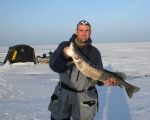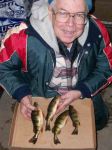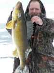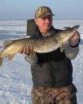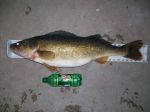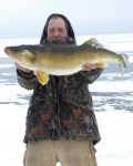 Well, my wife and I thought we were kicking big walleye butt with her catching a 28 inch walleye Wednesday and myself a 29 incher Thursday. But then longtime guest (now good friend) Brian Frost came in the store and "let the air out of our sail". He and his friends didn't catch any numbers today, but they sure caught some quality fish. Brian's friend John (last name escapes me) caught a decent northern, Matt followed with a little better one at 32 inches and 9 1/2 pounds. Then Brian topped it off with a piggy walleye that is going on the wall. It came in at 30 1/4 inches and a whopping 11 1/2 pounds! Brian was hoping to get his wall mounter, so I guess this trip is a success. Congratulations Brian!!! Two other guys staying with us ended up with 5 eaters today and lost two more that were keepers. Yesterday, my dad snuck out of here for a couple hours and caught a few nice perch. He said he would have done really good had he taken more bait. He only took 6 minnows and they were gone quick!!! He tried waxworms, but the perch wanted minnows.
