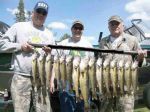 Well, the day started out pretty chilly with frost on the windshields of all the vehicles at the resort. The fishing for us started out cold as well. I had Dale DeWildt and his son Mark from Wisconsin with me today. Dale has fished opening day with me for several years and we've always managed to do quite well. After the first couple hours of today's trip...I was thinking that our streak might be coming to an end. However, we stayed persistent, stayed away from most of the boat traffic, and about 10 a.m. the fish started biting. We caught several fish while trolling Walleyes Choice harnesses behind bottom bouncers in 30-32 fow. Then the wind picked up just enough to do some drifting. We put the trolling rods aways and drifted with floating jig heads tipped with crawler halves for a good part of 3 hrs. The wind died, and we had just enough time to put the boards back out, however this time we headed shallow to some weeds and we caught 4 more keepers while trolling harnesses and in-line weights along a weedline. I-34 was very good for us today as well as I-62. We released many undersized walleyes, some white bass, a sheepshead, and two suckers! Reports from guests at the resort varied from limits to some not catching any fish at all. Water temp went from 51 in the morning to 55 by the time we came in. I think it will get better as the water steadily warms up this week. Here's a picture of today's catch, good luck from all of us in the Bay de Noc area.