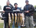 Today's trip was with three generations of the Otten family from the Milwaukee area. I've had the great pleasure of fishing with this family for a few years...and I really look forward to it every year. Gene, Henry and Nick make fishing a lot of fun!!! Yesterday we had to wait for the storms and heavy rain to move through before heading out. We managed to scrounge up 6 "eaters" and a nice perch before heading in. Today I was pretty worried for most of the trip, all we could get was undersized fish. We made a bold move and changed tactics and in the last couple hours of the trip we caught some very nice fish. We pulled 5 walleyes between 25 and 29 inches, two decent pike, two huge catfish around 12 and 15 lbs., and a huge sheepshead. With tourney day tomorrow I can't elaborate much on the how's and where's, but it was a fun end to a great couple of days with some great people. Here's a picture of today's catch, good luck from all of us in the Bay de Noc area.