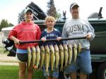 Today I had the opportunity to fish with part of a great family from the Orion area of lower Michigan. Only three of the five family members went fishing. Bridgette, Kathleen and their dad Mike came aboard for a five hour trip on the bay. We left the resort shortly after 6 a.m., and when we got to the Gladstone Yacht Harbor and I saw the flags already blowing...I knew it was going to get windy! As most of you know, I am not fond of a west wind, mostly because it makes boat control very difficult when all of the structure in the bay goes north and south. We put out two small drift socks to stabilize the boat and slow us down some, and by using the auto pilot we were able to keep a pretty steady speed of .9 to 1.0 mph. I was quite surprised at how many boats were out there this morning, especially for how windy it was. As for the fishing...it was actually pretty good, especially the average size of the fish. We didn't catch nearly as many small fish as we've been getting lately, and we had several nice fish over 20 inches today. Most were 16 to 19 inchers though. Walleyes Choice (http://www.walleyeschoice.com) harnesses and bottom bouncers caught all the fish, with I-76, I-62, and I-51 accounting for the majority of them. We quit shortly after 11 a.m. when the wind really started cranking, but we ended up with 11 really nice walleyes for them to take home and enjoy. I really enjoyed today, it's always nice to get families that enjoy spending time together in the outdoors. Here's a couple pictures of today's trip, good luck from all of us in the Bays de Noc area.