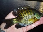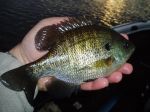 I brought Diane down there last night after work. In the hour and a half or so that we fished, we landed about 40 fish, (a mixture of sunnies, small bass, perch, shiners, and even a small crappie.) Ended the trip with 15 nice sunfish in the livewell.