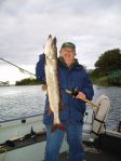 While I was doing that, my dad motored over to show me a nice pike he caught. It was longer than the 36 inch ruler he had in the boat, (guessing 37-38 inches.) He caught it on a large Storm swimbait. After a couple quick pics, she was released.