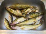 I forgot to send the pictures to Kenneth last night so he cold put up a report (oops). That said, Kenneth had a five hour trip yesterday and had a pretty tough bite only catching 5 keeper walleye and several pretty decent perch. I'm pretty sure all the fish were caught trolling spinners and crawlers. Kenneth checked the stomach on the largest perch and was surprised to find a couple alewives in there. The guys here prefishing for the MWC Tourney this weekend have really been struggling to find anything consistent. Not surprising since it seems like the wind has been switching directions just about every day. And by wind, I don't mean any 5-10 mph stuff either. Several days in the last week have just been too windy to fish, period. Then we wake up to 31 degrees this morning... Now that's a cold front!!! Anyway, I think the weigh-in's start at 4:00 pm Saturday and Sunday at the Gladstone Yacht Harbor.