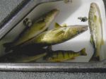 Yesterday we had Jay from Hardwood Michigan and Joe from Neighboring Wisconsin aboard.  We headed out of the Gladstone Yacht Harbor around 1 p.m. and headed to the north end where the water is still nice and dirty.  On our fist pass trolling Walleyes Choice (http://www.walleyeschoice.com) harnesses behind bottom bouncers over a narrow reef we lost three nice fish and caught a jumbo perch.  We then moved to some shallower weeds and pulled spinners over the weed tops.  Here we caught another jumbo perch and two keeper walleyes and lost three keeper walleyes.   They were biting very light...but at least they were biting a little, which is better than it has been.  Most bites were coming on I-62 or I-76.  We probably should have stayed and fished the weeds all afternoon, I'm sure we could have plucked a few more fish out of there, but we made a big move south and decided to troll crankbaits over some structure.  We caught two nice fish at 20 and 22 inches and lost a pig right behind the boat, and that was it!  Not the best day on the water, but it seems like the fish might be slowly coming out of the funk they've been in for the last few weeks.  With nice weather coming in for a few days, this might be what it takes to get them going again.  Good luck from all of us in the Bay de Noc area.