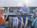 Nick Dood and his friends tore up the walleye last night. Deja vu if these guys look familiar as they did the very same thing last year! It must be a pretty good sized livewell because the fish just kept coming and coming and coming...for a total of 18. The biggest fish was about 10 pounds even. The hot bait was the blue and orange Rattling Rogue. Congratulations guys!!! The night bite seems to be improving quite a bit now, so I'm guessing the water is starting to clear up finally from the big blow awhile back.