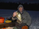 My brother Kenneth, my wife Theresa, and I hit an inland lake this afternoon for some panfish. The bluegills for the most part were nothing to jump up and down about. I only caught one small gill and one small crappie. The lake is supposed to have a few walleye too, so I spent quite bit of time jigging, but no walleye today. Theresa caught about half dozen or so small gills plus a 14 inch crappie. Kenneth did the best taking home about 10 gills big enough to eat plus another 14 inch crappie. Not the greatest day, but surely not the worst either...