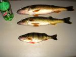 Hey Kevin, I think I fell a sleep in my shack a couple times too!!!. Got out there earlier yesterday because on monday we were marking fish early from 4:30 right till dark and had a great night. So , not wanting to miss anything we were set up by 2:30-3:00 and sat there getting a stiff back not marking a thing. What a change in fish attitude. Hardly marked anything until 6:30 or so and then it was on. Marking lots of fish but all lookers and sniffers until.................. I found the hot lure of the day. Have never caught a fish on this lure before so it always sits in the corner of my tackle box begging for chance to be used , kinda like the kid that doesn't want to be picked last on a team. Well, O K , let's see what ya got kid . Low and behold , it was his time to shine. Ended up catching I believe 19 walleyes in about an hour and 15 minutes. Fast and furious for a while. Although they were running small I managed 4 keepers and I believe 15 dinks. Lost quite a few too. Just couldn't bring that 5th one home. Went from famine to feast in a hurry. Sad part was , nobody around me caught anything , but was marking quite a few. Great way to end the season. Oh yeah, almost forgot to tell you who I picked last to be on my team.............. why if it wasn't little ol'...................Chartruese orange tiger ICE DARTER !!!!!! Just like little Casey hitting a home run. Gonna have to move him to a different corner in the ol box. Thanks Boys!!! Well, now that that's over , it's on to bigger and burbot things. We still gotta hook up and go get us some. Later!!! Slammer!!!