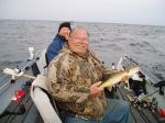 A couple days of good south wind has the Ford River bite cranking again. My dad was out early in the day on Friday, and got a limit of fish that were 18 to 26 inches. He was running harnesses with chartreuse and firetiger blades. He "guided" for my buddy Bruce and I later in the evening. The wind was stronger by then, and we weren't able to keep our speed down slow enough. I decided to replace one of the crawler rigs with a firetiger Bomber Long-A. Hooked the first fish before I even put the box back in the tackle bag! "OK boys, time to make a change!" We switched all the rods over to Bombers, and Bruce and I had our two man limit in under an hour and a half.