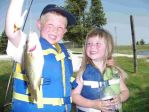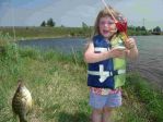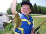 Well...I had a great day off today, I got to spend some quality time with the kids. We grabbed some lemonade and worms from Sall-Mar and headed out to try and find some panfish. Our first stop was the Esky harbor. We didn't find much action there so our next stop was behind Dam #3 on the Esky River. It took a little while, but the fish finally started biting a bit and the kids had a blast, even though it was 90 some degrees. We didn't stay long because of the heat, but we did end up with 7 nice keepers and released probably 20 or so small blue-gills and rockies. By the time we got home the air temp. in Cornell was 98 degrees...boy did that change when the cold front came through tonight. I also had a good conversation today with local CO Reid Roeske about how much fun it is to take our kids fishing. Does it try your patience some days? Of course, but the rewards are priceless. I've always said the world would be a better place if every kid had a rod and reel. Reid also reminded me of the "pocket park" in Escanaba and that many people don't realize it's free to take your kids fishing there. I was at a birthday party there last summer and boy did the kids have a blast, and the fish in that pond are beauties. Here's a few pics of our fun in the sun.