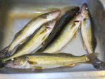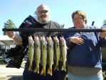 Well...the day started out a little on the chilly side, but the fishing action started out hot. The only thing was we could not keep hooks into the fish today. I had the pleasure of sharing the boat with Guy and Debbie and no-matter what we did the fish just kept coming off. We tried feeding it to them a little longer, we tried setting the hooks right away, we tried reeling them in slow, tried reeling them in faster, it just didn't matter. We should have had almost a two person limit on our first pass. It was just a quick 5 hr. trip this morning and we ended up with 6 nice "eaters" for them to enjoy on the rest of their vacation in Manistique. By 11:30 it seemed that the fish had hunkered down to bottom again and the bite was tapering, but from 7 until about 10:30 this morning it was a pretty good bite. All of our fish came on Walleyes Choice (http://www.walleyeschoice.com) harnesses trolled behind bottom bouncers. Our best colors were I-62, I-42, and I-34. No particular color was better, we caught fish equally on all three. We did get some fish on I-76 too after the sun got up there pretty high. We probably released about 8 to 10 little eyes, but the majority of the bites today were nicer fish. It's very frustrating when you lose that many fish. Water temp. has dropped down to 62 degrees (unfortunately), but it looks like the next week or so we're going to have some nice stable weather which should produce a decent bite. Good luck from all of us in the Bay de Noc area.