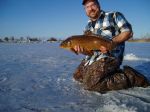 Christmas? I've got a "secret" spot on the bay that we're usually ice fishing...and catching...when they're still out there in boats! If my bro' is nice he'll take you out there! I'm sick of all this wind...can't do charters in 40 mph winds!!! Bring on the ice...