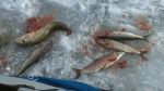 Got me a few more whitefish today. I reeled up 5 whitefish onto the ice. Ya can't believe how hard these fish fight. Only four are pictured because I gave one fish away.