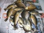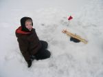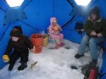 Some of the best memories I have from growing up are the times the whole family went ice fishing.  It wasn't uncommon to be out in the shanty 4 or 5 days a week on Lake Cadillac catching perch.  My mom, brother and I would either still be in the shanty when dad got home from work and he'd join us, or we'd be home with a bucket of fish for him to clean when he did get home.  Yesterday was the first of many family days on the ice for my family.  We met up with Mike Furmanski and his two daughters Brooke and Caroline and hit an inland lake for bluegills and pike.  Grandpa Bob even came up and joined us and was a nice surprise for the kids.  Normally my kids would be sitting butt on a bucket fishing away like daddy, but yesterday they had other plans.  They played more on the ice with their new friends than they fished...but that's all part of it too.  Let them have fun so they will want to go again.  Furball was having steady action on the tip-ups...but all the pike were like 15 inchers.  I was having pretty steady action catching gills (in between watching kids, pouring hot chocolate, un-tangling lines, etc.).  I cleaned 24 gills this morning which I will cook when I get home from work tonight.  Here's a few pics from our day on the ice.
