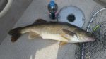 I had a decent day fishing here on BBDN today. I didn't limit out but it's not about limiting out every time I go out. I had five smallmouth's and three really nice walleyes. My biggest eye was 29 inches with the other two at 24 and 20 inches. I trolled with crawler harnesses all day with the gold hammered willow leaf blades doing all the work. Oh ya...I also had a carp that I fought for fifteen minites. By the time I got it in, it made five full circles around the boat.