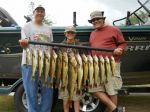 Today's 5 hr. trip was with Brad and his son Jesse all the way from northern Indiana. Having never walleye fished before, this was a new experience for them, and I wanted nothing more than for Jesse to get into some nice fish. They are camping over by Germfask, so they had a little drive this morning to meet me at the resort, so we didn't hit the water until around 7 a.m.. We started out trolling harnesses, but after only having 2 fish in the box at 10:30 it was time for a switch in tactics. We started drifting with Walleyes Choice (http://www.walleyeschoice.com) floating jig heads tipped with 1/2 crawlers...and in the next hour and a half we put 11 more fish in the box making for a great morning on the bay. We had fish from 16 to 27 inches today, and lost several nice ones as well. In addition to the walleyes, we landed a giant smallmouth, a carp, a pike, a sheepshead, and a few bonus perch! Jesse was a great little fisherman, and his dad was a quick learner as well...being able to feel the light pick-ups from the fish. The fish weren't hitting hard...just feeling like you picked up a weed. It's one of my favorite ways to fish, and I think Brad and Jesse are sold on the technique too. Good luck from all of us in the Bay de Noc area.
