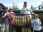 This morning's trip was with the DeWildt family from down by the Milwaukee area.  Mark usually comes up fishing with his father Dale (who will be here next week), but this time he brought some of his family with.  We got on the water just before 7 a.m. and it sure didn't start out fast and furious.  We were marking tons of fish, but they sure had a case of "lockjaw" for a while.  We had a couple of keepers and lost several when we made a change in location and then it was pretty consistent action for the next couple of hours until we came in around noon.  Could have easily had double the amount of fish today, but we had problems keeping the hooks in many of them.  Walleyes Choice (http://www.walleyeschoice.com) harnesses were the ticket trolled at .9 to 1.0 mph, with I-42 and I-34 being our best colors.  Nice chunky fish today, and boy did they fight!!!  Had to really pay attention to the boards today and get on 'em quick when you got a bite...or they were gone.  Good luck from all of us in the Bay de Noc area.