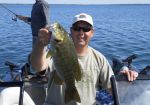 Kenneth and his clients Patrick and Jeff (lowly Bear's fans) spent most of the day yesterday fishing for smallmouth bass and caught some nice ones. The one smallmouth is so huge it looks just like a carp!!! Unfortunately, Kenneth forgot to turn the video camera on at the start of the day so most of the fish didn't get taped! They also fished for walleye for a little bit and caught a couple eaters plus a few really nice perch up to 14 inches. I think Patrick is putting the 14 incher on the wall. They only took one picture out on the boat too (need to talk to Kenneth about that!!!). Don't know what they are fishing for today. Too sunny for pike today, so probably either bass or walleye again. Earlier today a friend of mine stopped by and said the salmon fishing off Fairport has been on fire, but hardly anyone is out there fishing. What's up with that??? Just wanted to pass that on in case anyone needs more salmon. Better get out there folks, summer is winding down quick!!!