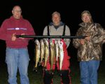 Guests Joe Volpe, Rick Palasek, and (forgot his name) ended up with 6 nice ones this afternoon. Water temp. is dropping fast as as they had 50 degrees at the north end. It was 60 just a couple weeks ago. I guess that's what waking up to 21 degrees does!!! Water levels are extremely low with even Kipling getting a little tricky from the sounds of it, so be careful out there!!! Good luck on the water folks...