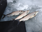 I stayed untill about 5:00 and did manage to jig up three really nice whitefish. The ice was a little shakey today from the south wind.