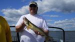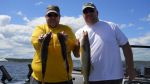 Yesterday's charter was a fun one, I got to spend some quality time with one of my best friends from back home in Cadillac. Bruce now lives in Grand Rapids, but we sure had some good times while we were both in Cadillac. He brought up a buddy this time, and I wasn't real optimistic about the fishing, it's been quite slow this week with all the cold fronts passing, water temperature dropping, and northwest winds clearing up the water. We started trolling bottom bouncers and Walleyes Choice spinners and picked up one small keeper, then we decided to switch over to casting for pike for a few hours. We landed two nice ones and had a couple other hits doing this. It was just a little too sunny for my liking, because the pike fishing is much better with an overcast day. I then decided to go back to fishing walleyes for the last 3 hrs. because the water had warmed up a few degrees and sometimes this can turn lethargic fish on. We headed to a weedline I like to fish this time of year and the fishing was pretty decent. We started out with a nice 24 incher, then a 21 incher, and a few more eaters before it was time to head in. All the walleyes came on Walleyes Choice I-42 and I-62 harnesses. Tried other colors, but those two were what they wanted yesterday. Good luck from all of us in the Bays de Noc area.