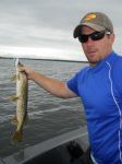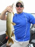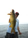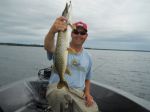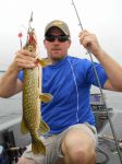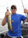 Tuesday we stayed on the little pond in search of pike and bass.  We caught somewhere around 20 pike while casting spinnerbaits, keeping three for a nice fish fry later in the week.  We also caught some quality smallies on Little Bay, but not the numbers that we get over on Big Bay.  Towards evening we did a little jigging for walleyes along a sharp break, but only landed one keeper and some undersized ones. Oh yeah...and I also landed a big carp on a drop-shot rig with a Jackal I-shad.  Now that was fun on 6 lb. test!!!