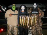 Had a fun day yesterday with a couple of brothers (John and Mike) from Illinois. We started out perch fishing and then switched over to walleyes just before dark. The perch were biting, but the average size was wayyyyy smaller than what we've been getting. We did keep about 25 before it was time to see if we could catch some "eyes". We then switched over to trolling crankbaits for a couple of hours and we did land 9 nice fish before it was time to head in. Suspending rogues definitely worked best for us, I don't think we even caught a single fish on another crankbait, so by the end of the night we had 6 rogues on the end of our lines. Weeds were a big problem last night, lots of dead floating weeds messing up our planer-boards and lures. I'm sure we would have caught more fish if our lures were clean of debris most of the time. Here's a video my brother shot...watch IF YOU DARE!!!