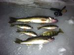 Guests Dale Rudzinski and Todd Vanlannen caught 9 keepers today. My friend Ed Closs caught his limit this afternoon(picture). My friend Cory Schram wasn't out long and still ended up with a couple keeper walleye and some perch (picture). So it wasn't slow everywhere. I know, not what you wanted to hear...