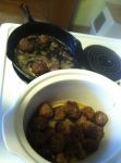 Now heat some more oil in a cast iron pan, flour your balls and brown um.. Once brown remove and put in the ol crock pot with some big shrooms on top and put on low for a few hours... remove the grease that has floated to the top and make a brown gravy to go with it and watch ur balls disappear....