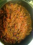 1 large can diced tomato, 1 can kidney bean, 1 can chilli beans..