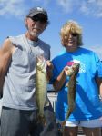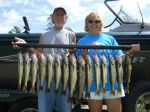 What a fantastic morning on the bay. Today was Melissa Visser's birthday, so she and her boyfriend went out on a fishing charter...and we had a great time! They were both great at learning our jigging technique, and they both put quite a few fish in the boat today. We were pitching 1/4 oz. chartreuse jigs tipped with just 1/2 a crawler, and the fish cooperated very well. We had 14 keepers and several undersized fish by 9:30, but then the sun got bright, it calmed down, and the water was clearing up some, so we made a move to go troll Walleyes Choice (http://www.walleyeschoice.com) harnesses for the last hour or so of our trip in deeper water. I-42, I-78, and I-110 were on our lines, and they all caught fish. We finished out our limit, released more undersized walleyes, and as we were just getting ready to pull lines to come in we ended up getting fish on all six lines we had out. That topped off a great morning of fishing!!! It was a beautiful morning to be on the bay, we could not believe we only saw a handful of boats out the entire time we fished. Good luck from all of us in the Bay de Noc area.
