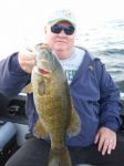 Yesterday I had a great morning of fishing with long-time client and all around great guy Gary Shackelton. We started out drifting in the outer bay with floating jig heads tipped with crawler halves, and Gary caught 3 real nice walleyes and a beautiful smallmouth bass that we released. Our wind died down so we headed to the north end to troll harnesses. We caught two keepers and lost a couple fish doing this before our time was up. We didn't have the greatest of fishing, but I always enjoy fishing with Gary. He's usually up here for a week or two at a time, and we usually fish a 1/2 day together. Hopefully he can go back to the same places we fished and get them on his own now.