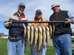 Today's trip was with Mark Phlug (center in picture) and a bunch of great guys from down by Grand Rapids Michigan (I believe). We trolled Walleyes Choice harnesses over weed tops this morning to land 6 really nice walleyes and a few perch. We lost two decent walleyes as well. Once the wind really kicked up around mid morning our bite completely died. We had 6 guys and two boats...and the fishing was very tough. Supposed to get down into the 20's tonight...so I'm not sure what that will do to the fish for tomorrow's trip, but it probably won't help! Good luck from all of us in the Bays de Noc area.