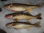 Well...my buddy Ray and I decided to head out on Little Bay today. We stayed north of "the narrows" at Gladstone and fished in 38 fow. We had a good six inches of ice where we were at. With the water dirty like it is, many times the daytime bite is the best, so we headed out earlier than we normally would and fished from about 11 a.m. until 5 p.m.. Shortly after getting set up we had fish coming through, but most of them were shorties. We both caught several undersized fish, most in the 10 inch range. At 1 p.m. I lost my first keeper and then dropped right back down and landed a nice 20 incher. Neither one of us could get a bite on anything other than a #9 jigging Rapala. Even all the small walleyes were caught on #9's. My best color today was parrot and Ray's was glow and also firetiger. I ended up landing 3 keepers and losing 2 while jigging, and I lost one on a tip-up because it was froze up. Guess it's time to put some new lube in my polar tip-ups. It was a fun day for the first walleye trip of the year, Good luck from all of us in the Bay de Noc area.