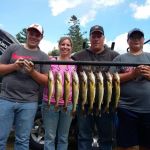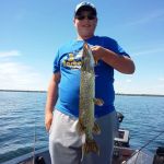 The fishing recently has been just like the weather...up and down. Friday's front that moved through gave us the first major change in weather in a couple of weeks, and with the northeast winds, the fishing was much tougher on Saturday. We only landed 2 keepers on Saturday morning's trip. Sunday, while fishing with the Swanson family from Manton Michigan, we had a little better bite and we were able to get 9 keepers in the boat. Walleyes Choice harnesses in I-62 was by far our best weapon of choice. (http://www.walleyeschoice.com) Today's trip started out really good, we had 4 keepers in our first two passes over the structure we've been fishing and then it was total frustration after that. We went on to lose several nice fish before the bite died and we went casting spinnerbaits for pike. I-62 and I-51 were our best colors today (Monday). Here's a few pictures from the last couple of days on the water. Good luck from all of us in the Bay de Noc area.